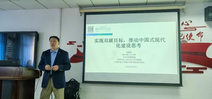 2023年4月1日,天津科技大学博士生导师孙振清教授应邀在综合楼806室为BB贝博师生作了题为“实现双碳目标,推动中国式现代化建设思考”的学术报告。报告由经济学院院长牛建高主持,经济学院80余名师生参加。