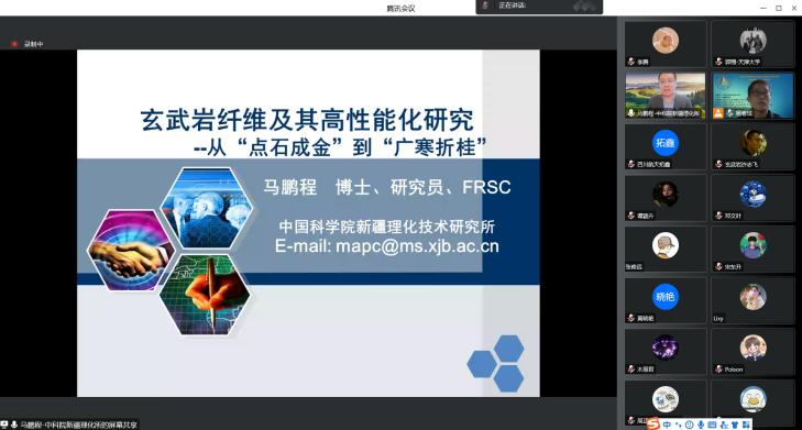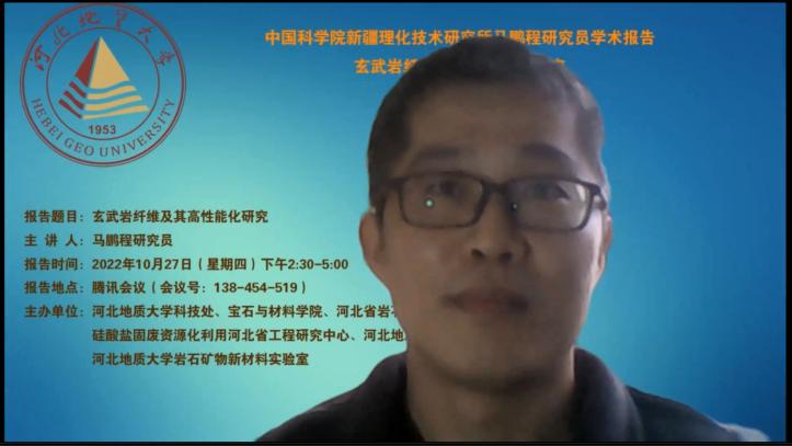 2022年10月27日下午,中国科学院新疆理化技术研究所马鹏程研究员,应邀为BB贝博师生作了题为“玄武岩纤维及其高性能化研究”的学术报告。本次学术活动由科技处和宝石与材料学院共同主办,河北省岩石矿物材料绿色开发重点实验室、硅酸盐固废资源化利用河北省工程研究中心、BB贝博艾弗森官网玄武岩纤维研究所、BB贝博艾弗森官网岩石矿物新材料实验室协办,采用线上腾讯会议模式。宝石与材料学院院长李艳研究员、宝石与材料学院党委书记王旭辉、教授李红超及相关学科专业的师生及玄武岩纤维领域的校外同行共300人参加了报告会,玄武岩纤维材料研究所所长杨春成副教授主持。