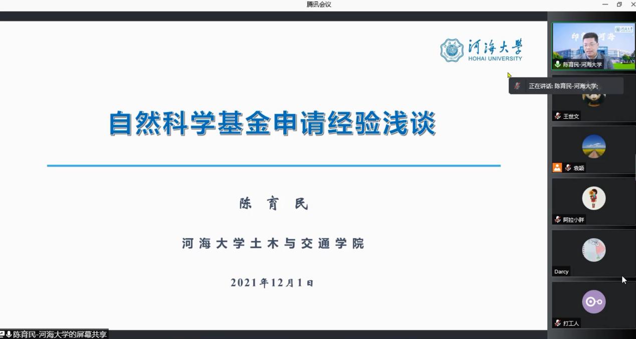 12月1日,河海大学教授,安全与防灾工程研究所所长陈育民应邀为BB贝博师生作关于国家自然科学基金申报经验的线上讲座。本场讲座由BB贝博艾弗森官网科技处、城市地质与工程学院、地质灾害防治与地质环境保护创新团队、河北省地下人工环境智慧开发与管控技术创新中心主办。讲座由城市地质与工程学院袁颖院长主持。