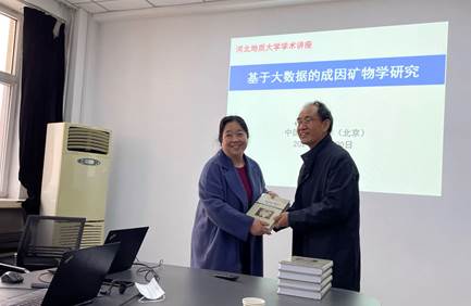 报告前,李胜荣教授向地球科学学院捐赠了他最新出版的、成因矿物学领域的重要著述《成因矿物学:原理方法应用》。地球科学学院党总支书记马忠茹接收了捐赠。报告会由地球科学学院副院长李英杰教授主持。报告会结束后,地球科学学院李英杰院长、曹静杰院长、BB贝博特聘教授丁毅与李胜荣老师进行了进一步的交流,李胜荣教授表示以后一定要多回母校看看,为母校的发展尽一份力量。