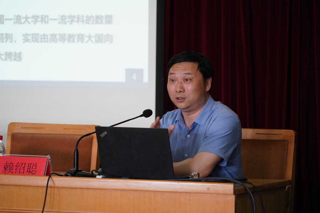 5月17日下午,西北大学副校长赖少聪应邀来校作学术交流,在一教九楼学术报告厅作“‘双一流’背景下高等学校学科建设策略”主题报告。校长王凤鸣,副校长闫军印、王滨出席报告会,各学院负责人和相关教师代表聆听报告会。闫军印主持会议。