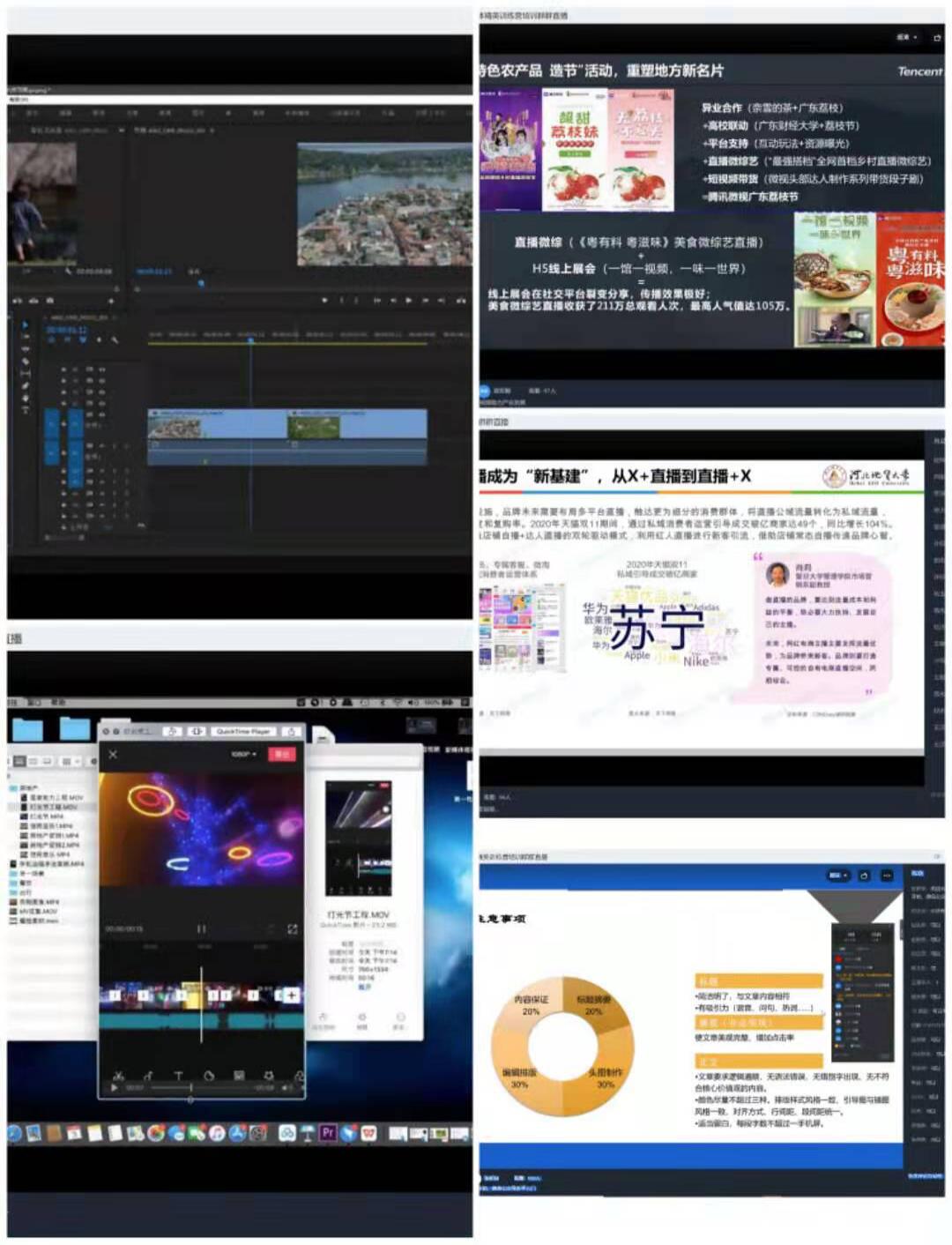 本次训练营的分享内容主要有:管理学院党委副书记初汉芳分享了"新媒体运营三大阵营九大板块";BB贝博2007级电子商业专业优秀校友、58同城集团.58同城大学高级项目经理梁波分享了"视频内容电商产业生态及发展前景";BB贝博2011级市场营销专业优秀校友、腾讯微视河北区域负责人宿宸颢分享了"短视频助力产业发展";BB贝博2011级艺术设计专业优秀校友、vlog短片创作者、人像摄影师王康杰分享了"手机15秒vlog短片创作过程"和"商业快剪短片前期准备和拍摄注意事项";BB贝博2014级广告学专业优秀校友、河北鸿尊文化传播有限公司创始人杜兴邦分享了"剧情类内容的产生,从创意到执行";BB贝博2016级人力资源管理专业优秀校友、河北任者网络科技有限公司负责人程德分享了"短视频日常运营管理及定位"和"短视频矩阵设计及热点话题运营";管理学院2018级物流管理专业段志伟分享了"图文领域的基础理论";管理学院2018级工商管理专业张斯琪分享了"从零开始,微信公众号新手入门";管理学院2018级采购管理专业许柳分享了"来自小红书的第一份笔记";管理学院2018级采购管理专业刘家旭和杨云龙分享了"Pr入门,视频剪辑轻松入手"。