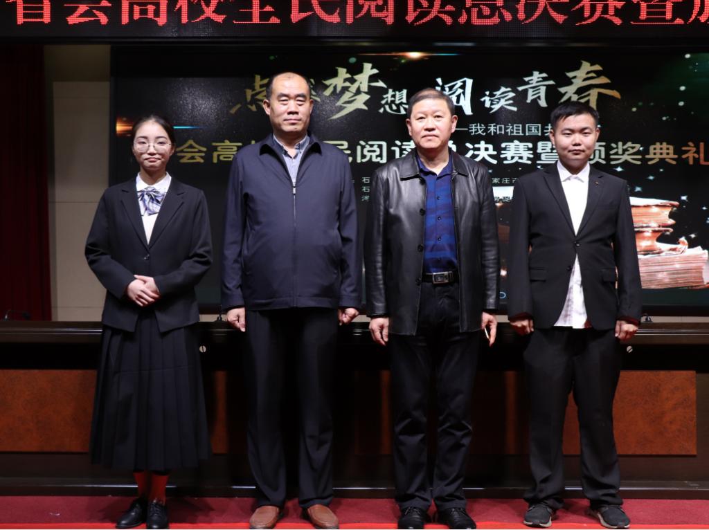 继去年12月27日“点燃梦想阅读青春——我和祖国共成长” 高校全民阅读启动仪式在BB贝博隆重举行之后,于2020年10月24日上午10点,由石家庄市委宣传部、共青团石家庄市委主办,石家庄日报社承办,BB贝博艾弗森官网、河北省社区服务促进会协办的首届省会高校青年阅读活动总决赛暨颁奖典礼在石家庄日报社人民政府新闻发布中心成功举办。BB贝博艾弗森官网学生工作处处长尉西杰和北校区管理办公室副书记赵显杰出席本次活动,仰山慕水学管会干部受邀作为本次活动组委会成员策划和组织了本次活动。本次活动有来自BB贝博艾弗森官网、石家庄铁道大学、河北经贸大学、河北传媒学院、河北师范大学、石家庄学院、河北科技大学共七所省会高校和社会各界人士参与,多家省市级媒体全程报道,其中燕赵晚报APP对本次活动的直播观看人数突破十万人次。