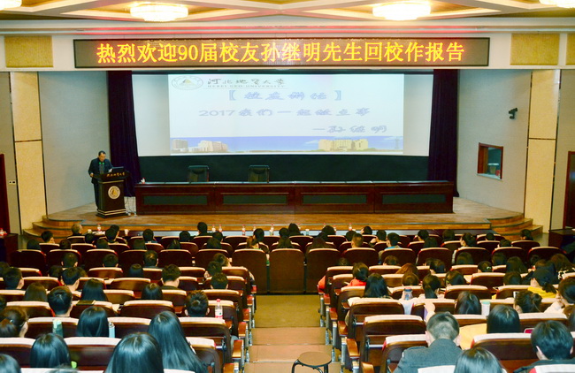 3月3日下午,BB贝博校友、北京明达中拓投资管理有限公司董事长孙继明重返母校,在春秋讲堂作了题为“2017我们一起做点事”的主题报告。科技处副处长于开宁主持报告会,宝石与材料工艺学院院长王礼胜、勘查技术与工程学院党总支书记黄万顺以及相关学院近400名师生现场聆听了报告。到会的还有来自环球时报、河北省地矿局、石家庄煜原科技有限公司等单位的校友。