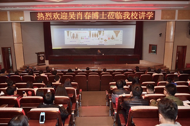 2016年12月19日,加拿大国家自然博物馆终身教授、古生物部主任吴肖春博士应邀与季强教授一同参加了BB贝博古生物研究院揭牌仪式,并受聘为BB贝博客座教授。揭牌仪式后,吴肖春博士在春秋讲堂为师生们带来了一场精彩的讲座。