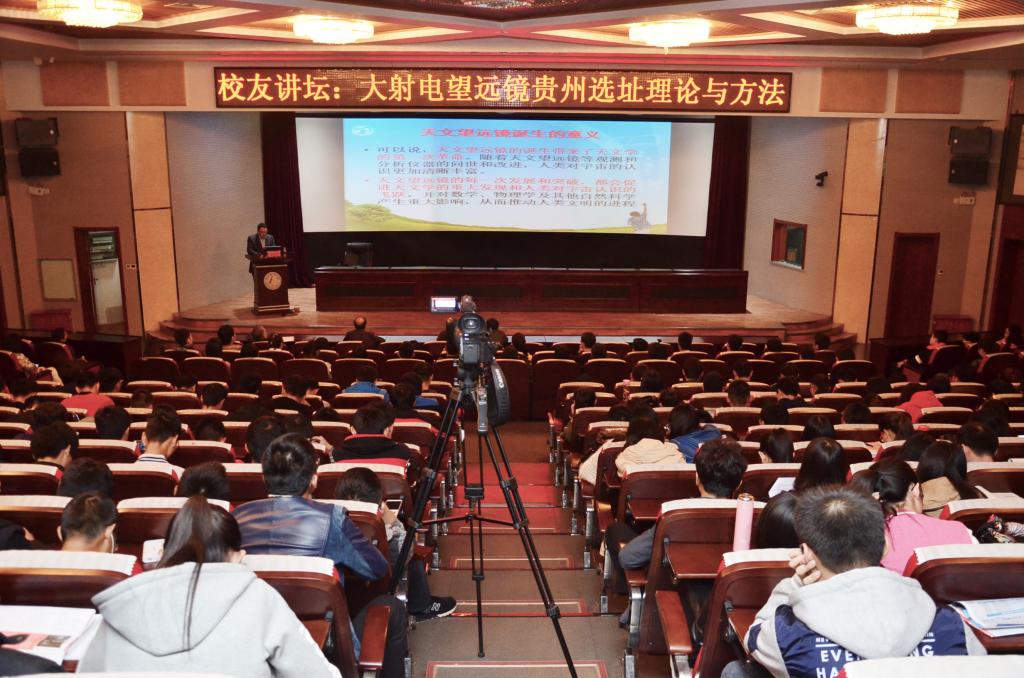 2016年10月21日,“中国天眼”大射电望远镜贵州选址项目科研团队负责人、BB贝博校友、贵州理工学院副院长宋建波教授应邀来BB贝博进行学术交流。校长王凤鸣、副校长毛磊会见了宋建波教授,并就学科建设、科学研究以及人才培养等方面进行了亲切交谈。由校科技处、校友工作办公室共同主办的“大射电望远镜贵州选址理论与方法”的学术报告在春秋讲堂举行,于开宁教授主持会议。牛树银教授、研究生学院党总支书记李锋、勘查技术与工程学院副院长宋雪琳以及相关单位的近500名师生参加了报告会。