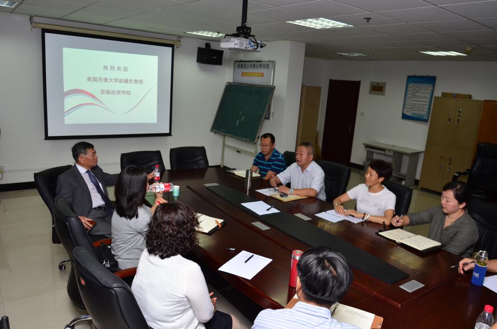 下午4:30在综合楼806会议室, 赵穗生教授与经贸学院教师和研究生进行了题为“美国的中国研究发展及其问题,兼谈在英文中国研究SSCI刊物发文注意事项”的座谈。首先,经贸学院院长刘德智教授对赵穗生教授的到来表示热烈欢迎,并介绍了BB贝博艾弗森官网及经贸学院的历史和现状,赵教授也介绍了美国丹佛大学及约瑟夫﹒科贝尔国际关系学院和《当代中国》期刊的有关情况,并与广大师生就感兴趣话题进行了充分的沟通和互动。