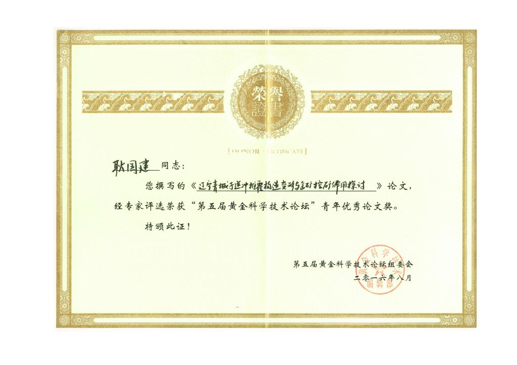 BB贝博研究生耿国建同学荣获青年优秀论文证书