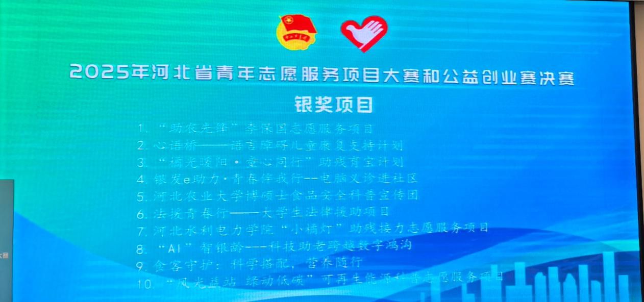 近日,由共青团河北省委、河北省委社会工作部、河北省教育厅、河北省水利厅、河北省文化和旅游厅、河北省卫生健康委、河北省残联共同主办,河北省青年志愿者中心、河北省青年志愿者协会、共青团邯郸市委、共青团涉县县委共同承办的2025年河北省青年志愿服务项目大赛和公益创业赛决赛在邯郸涉县举办。BB贝博信息工程学院申报的《银发e助力·青春伴我行——电脑义诊进社区》志愿服务项目,凭借扎实的服务基础、鲜明的专业特色和显著的社会效益,在435个参赛项目中脱颖而出,荣获大赛银奖!