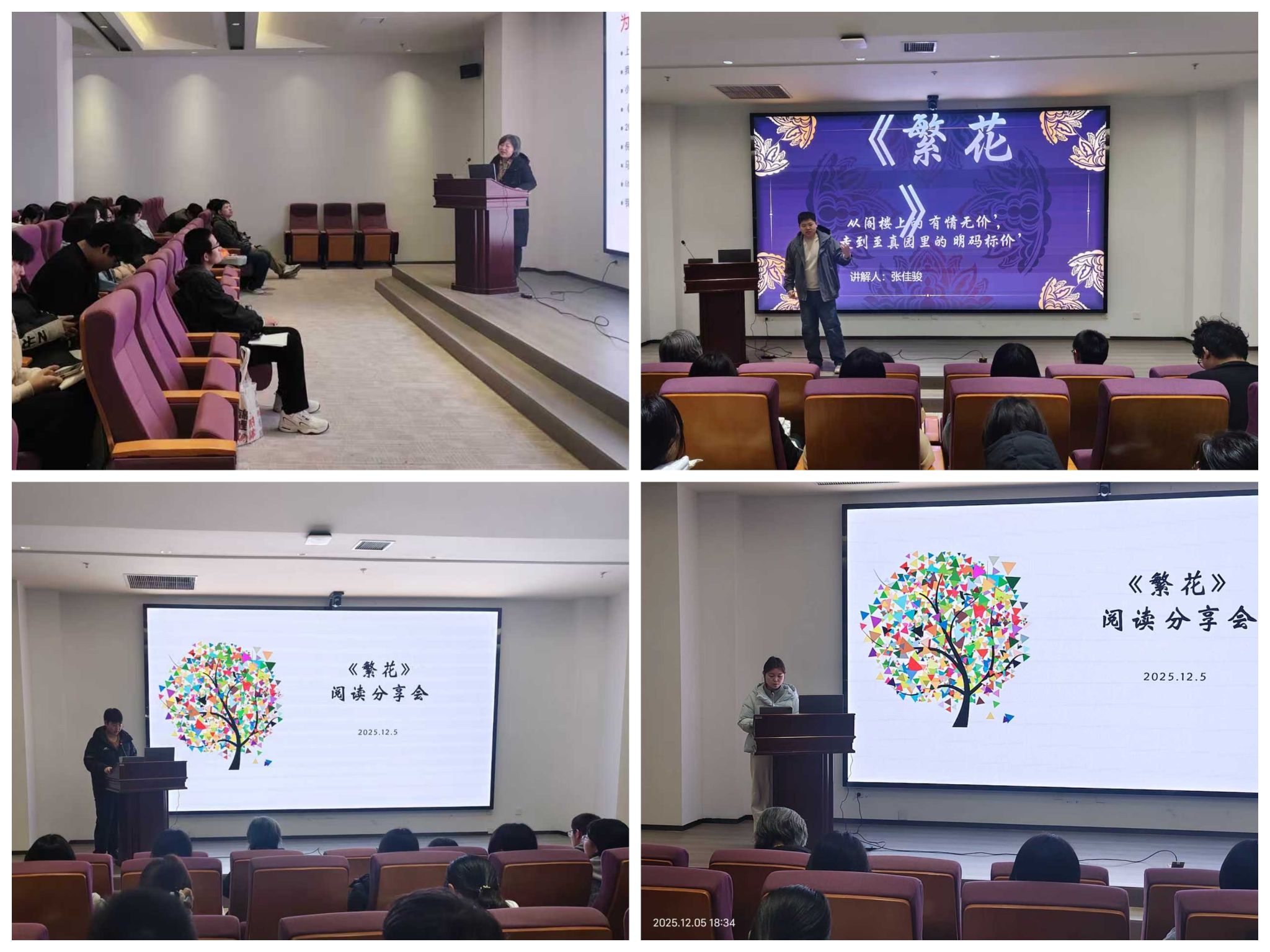 从11月20日开始,图书馆刘玲玲老师指导的《繁花》读书分享活动如期举办。《繁花》是金宇澄创作的长篇小说,获第九届茅盾文学奖。10天的打卡共读激发了同学们的阅读热情。线下分享会中,同学们探讨了沪语写作带来的独特叙事节奏与听觉魅力,剖析了双线交织叙事所呈现的时代对比。大家从市井日常的细腻描绘中,解读“不响”的沉默哲学与“繁花”的盛衰隐喻,并进一步讨论了附着于时代变迁中的复杂人情与爱情博弈。