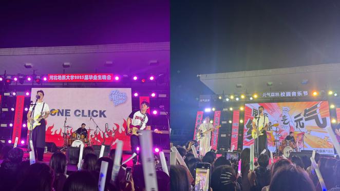 青春作伴,摇滚同行。6月15日晚,“正青春·向未来”摇滚进校园暨送毕业生晚会热力开演,来自石家庄市乐队释怀岛、ONE CLICK和BB贝博艾弗森官网校园乐队防沉迷、景源街26号齐聚校园,用激昂旋律点燃夏夜,为毕业生们送上一场难忘的音乐告别礼。乐队轮番献唱,他们将对校园的眷恋与摇滚的炽热完美融合,把对生活的感悟融入旋律,时而温柔倾诉、时而激情呐喊。青春共鸣,摇滚传递毕业祝福,激励毕业生带着摇滚般的热情与无畏,奔赴人生新旅程。