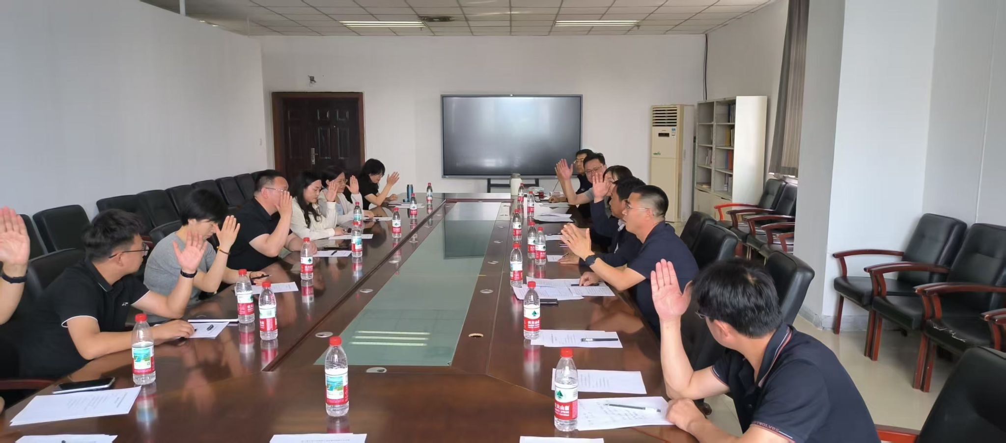 随后,孙日华宣读了《农工党石家庄市委基层组织换届选举办法》及新一届班子成员候选名单批复,全体党员审议通过选举流程。经举手表决,孙日华继续担任支部主委,董军彪、高国明当选支部副主委,曹宁、孙兴丽、杨新科获任支部委员。