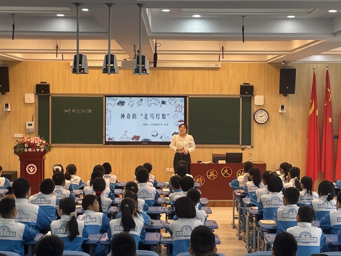 为深入贯彻党的二十大及二十届二中、三中全会精神,推动BB贝博“红耀双地”党建品牌建设,4月1日,数理教学部“红心启智·地大数学π”党员公益课堂正式启动。首场讲座由讲学团成员张湉同学主讲,面向石家庄精英中学小学部5至6年级的184名学生,开展了题为《神奇的“走马灯数”》的专题授课。