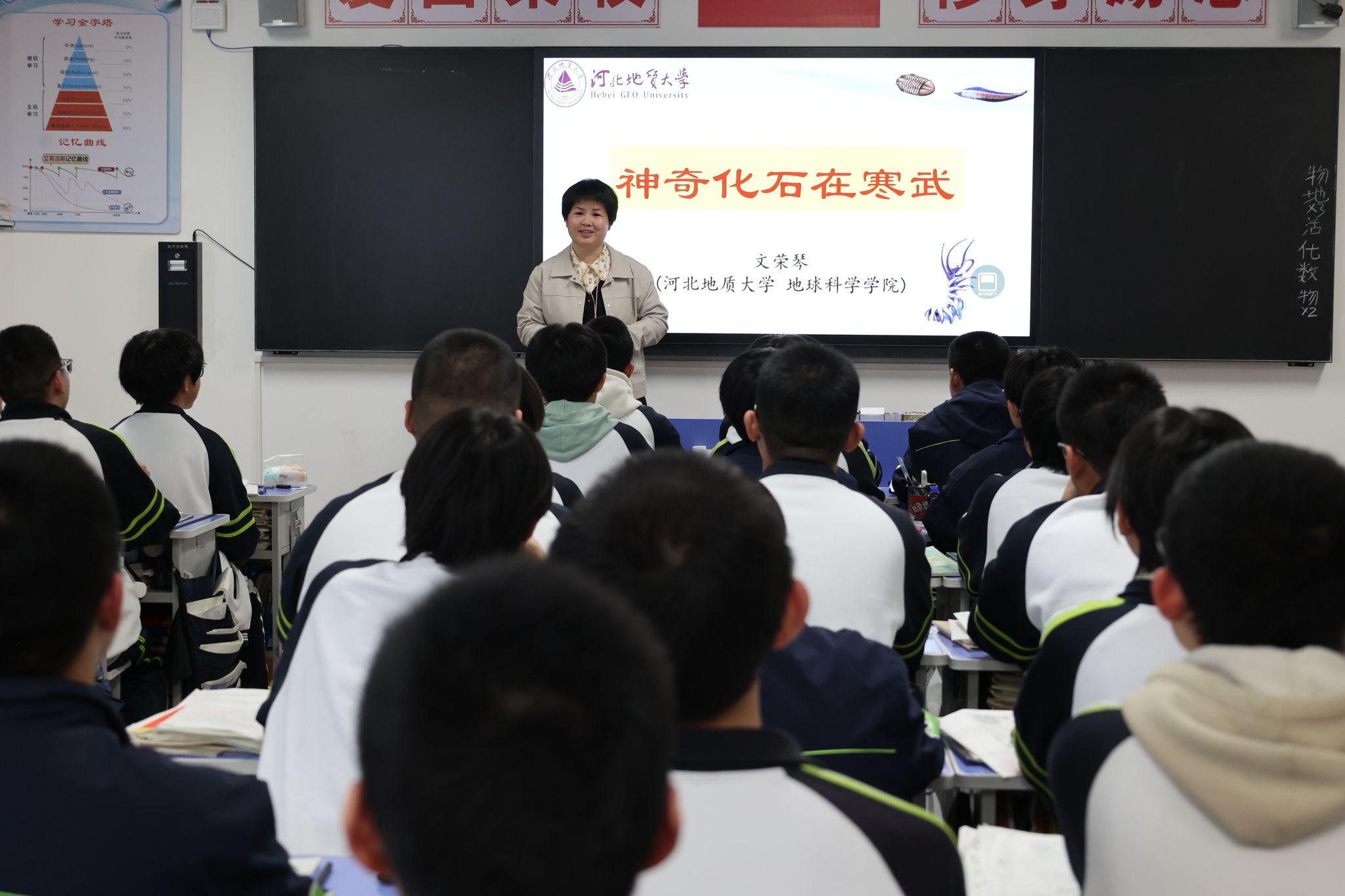 文荣琴分别在7所中学为学子们带来主题为《神奇化石在寒武》的科普讲座,同学们积极互动,现场反响热烈。