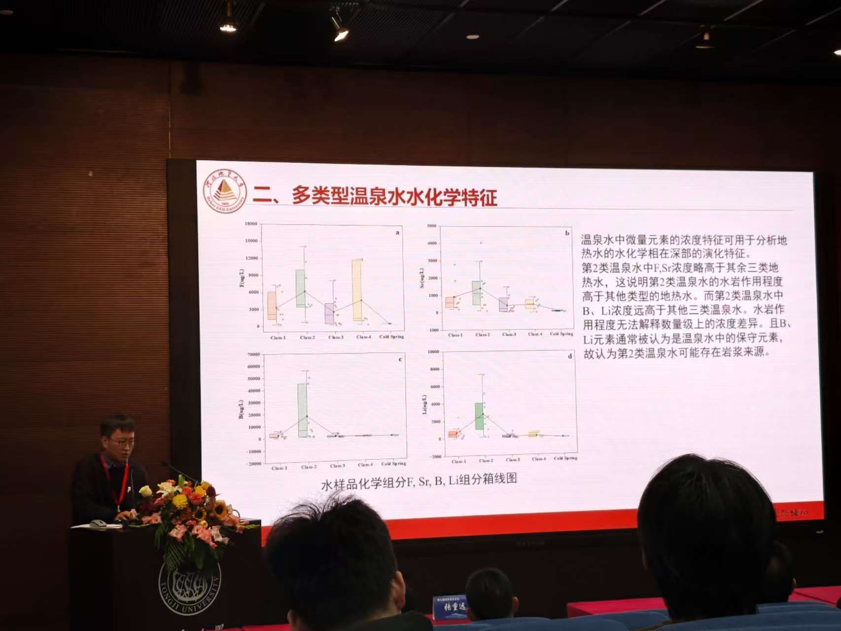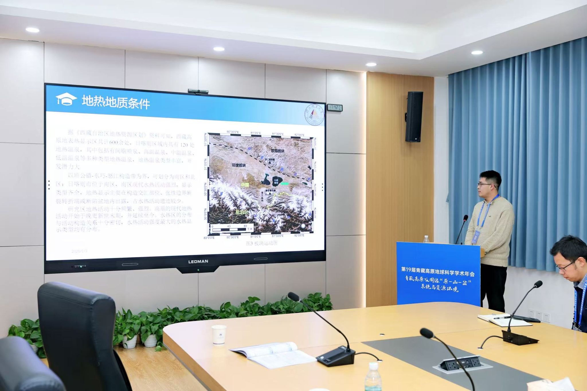 本次会议聚焦“青藏高原及周缘‘原-山-盆’系统与资源环境”,共设8个专题,全方位、多角度地剖析青藏高原地球科学研究相关问题。BB贝博能源研究所青年教师侯中帅、城市地质与工程学院研究生郑亚东积极参与此次学术盛会,郑亚东在《专题五“原-山-盆”系统构造-沉积耦合与能源》中进行了精彩的汇报,以《日喀则市典型地热显示区水化学特征及成因》为主题,从研究背景、实验方法、数据分析及结论展望等多个维度,系统而详尽地阐述了BB贝博在西藏地热领域取得的相关研究成果。