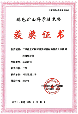 1月10日-12日,第二届中国绿色矿山国际年会暨2024年度绿色矿山科学技术奖颁奖大会在北京召开。由BB贝博为第一完成单位申报的项目“三维孔道矿物基相变储能材料制备及性能调控机理研究”,荣获2024年度绿色矿山科学技术奖基础研究二等奖。这是BB贝博宝石与材料学院新能源与环境材料科研团队在新能源储能领域取得的一项重要成果。