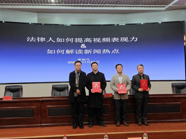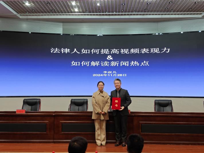 活动伊始,孙日华为高霞、李叔凡、陈肖言、段瑞颁发客座教授聘书,马沁芳为李叔凡律师颁发BB贝博艾弗森官网青年新媒体工作室导师聘书。李叔凡,毕业于南开大学,出版专著《一看就懂的法律常识》,在抖音平台粉丝量达1121万,作品获赞量高达2亿。
