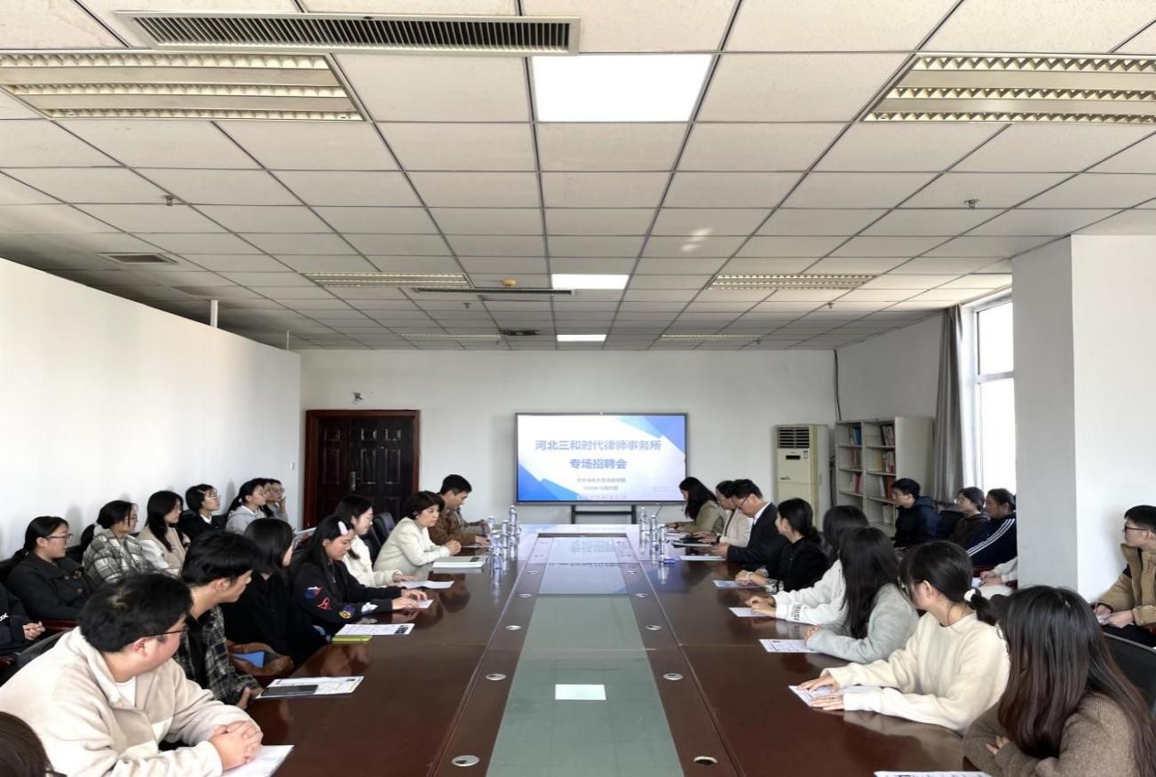 为助力毕业生实现高质量充分就业,拓宽毕业生就业平台,BB贝博法政学院携手河北三和时代律师事务所于10月23日成功举办专场招聘会。河北三和时代律师事务所合伙人律师、管委会成员郗研宇,办公室主任李婕,办公室职员申丽超,BB贝博法政学院党委书记董莉、院长孙日华、毕业班辅导员程玥溪,毕业班70多名学生参加活动。学院党委副书记朱晓玲主持此次活动。