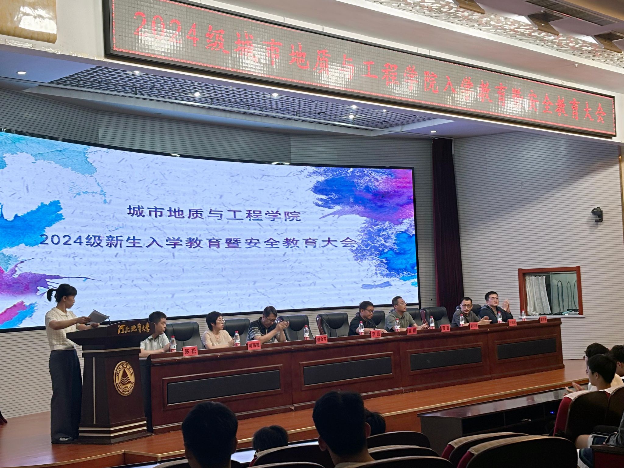 云天收夏色,木叶动秋生。为了让新生更好的适应大学的学习生活,9月11日中午,城市地质与工程学院2024级新生入学教育暨安全教育大会在春秋讲堂召开。院长袁颖、副院长贾磊、学生党支部书记裴文思、新生辅导员谭园园,各专业教研室主任及学院全体新生共360余人参加了此次会议。大会由院党委副书记李蕊主持。