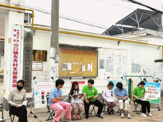 与此同时,服务队成员深入采访村委代表,与村书记、村委委员和村民代表展开了一场真挚且深入的心灵交流。从他们恳切的话语中,服务队成员切实了解到乡村阅读推广与普通话推广面临的实际阻碍,以及村民们对知识的热切期盼。为了营造浓郁的阅读氛围,成员们在村里的大街小巷张贴起精美的条幅和海报,那一句句鼓舞人心的话语,恰似温暖的春风,吹进了村民们的心田,极大地激发了他们对阅读的浓厚兴趣。