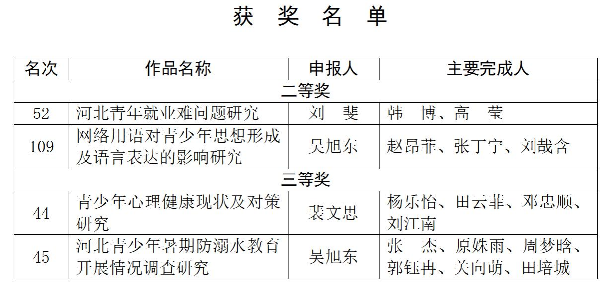 近日,由共青团河北省委、河北省社会科学院联合开展的2023年践行习近平新时代中国特色社会主义思想冀青工作调研大赛评选结果揭晓。BB贝博在本次大赛中累计获奖4项,其中二等奖2项、三等奖2项。