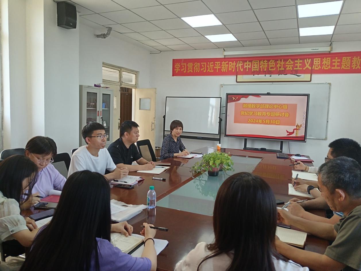 5月30日下午,数理教学部党委理论学习中心组(扩大)举行党纪学习教育专题研讨会。数理教学部党委书记李占乔主持并讲话,与会人员逐一发言,紧扣党纪学习教育交流心得体会,进一步强化遵规守纪的政治自觉、思想自觉、行动自觉,推动教学部党纪学习教育走深走实。