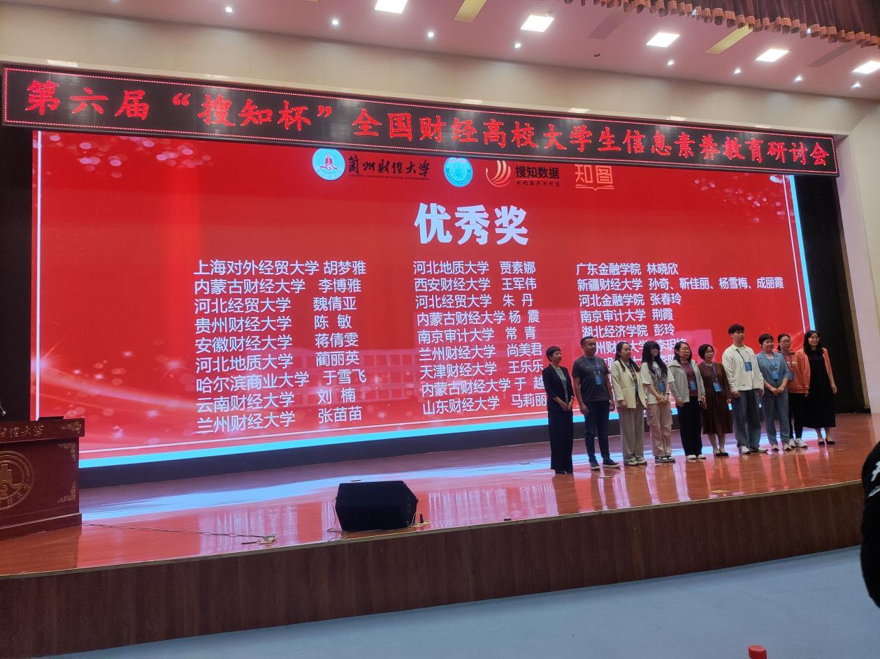 2024年5月25日—26日,由教育部高等学校图书情报工作指导委员会指导,全国财经高校图书情报专业委员会主办的第六届“搜知杯”全国财经高校信息素养大赛全国总决赛在兰州财经大学隆重举行,来自全国财经高校的38支本科组代表队展开了激烈角逐。BB贝博管理学院张文璇、刘威飒、陈峻三位同学共同组成的“创新者联盟”代表队荣获全国总决赛本科生组三等奖,图书馆指导教师贾素娜荣获本科生组“最佳指导教师奖”,BB贝博荣获组织奖。