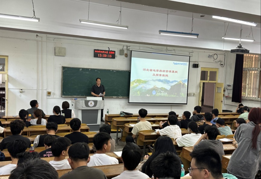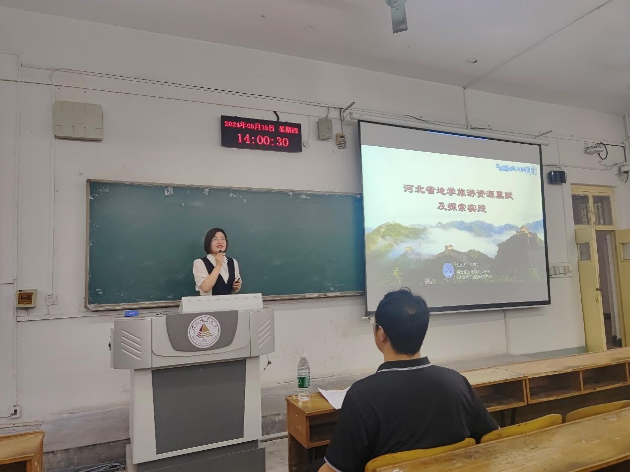 毛志芳从河北省地学旅游资源禀赋概况、我省地学旅游资源开发利用情况和我省地勘系统本世纪以来相关领域工作开展情况及未来工作重点方向四个方面系统介绍了我省地学旅游的情况,内容有深度、有广度,向学生系统传达了地质与旅游的关系,开拓了学生的视野。