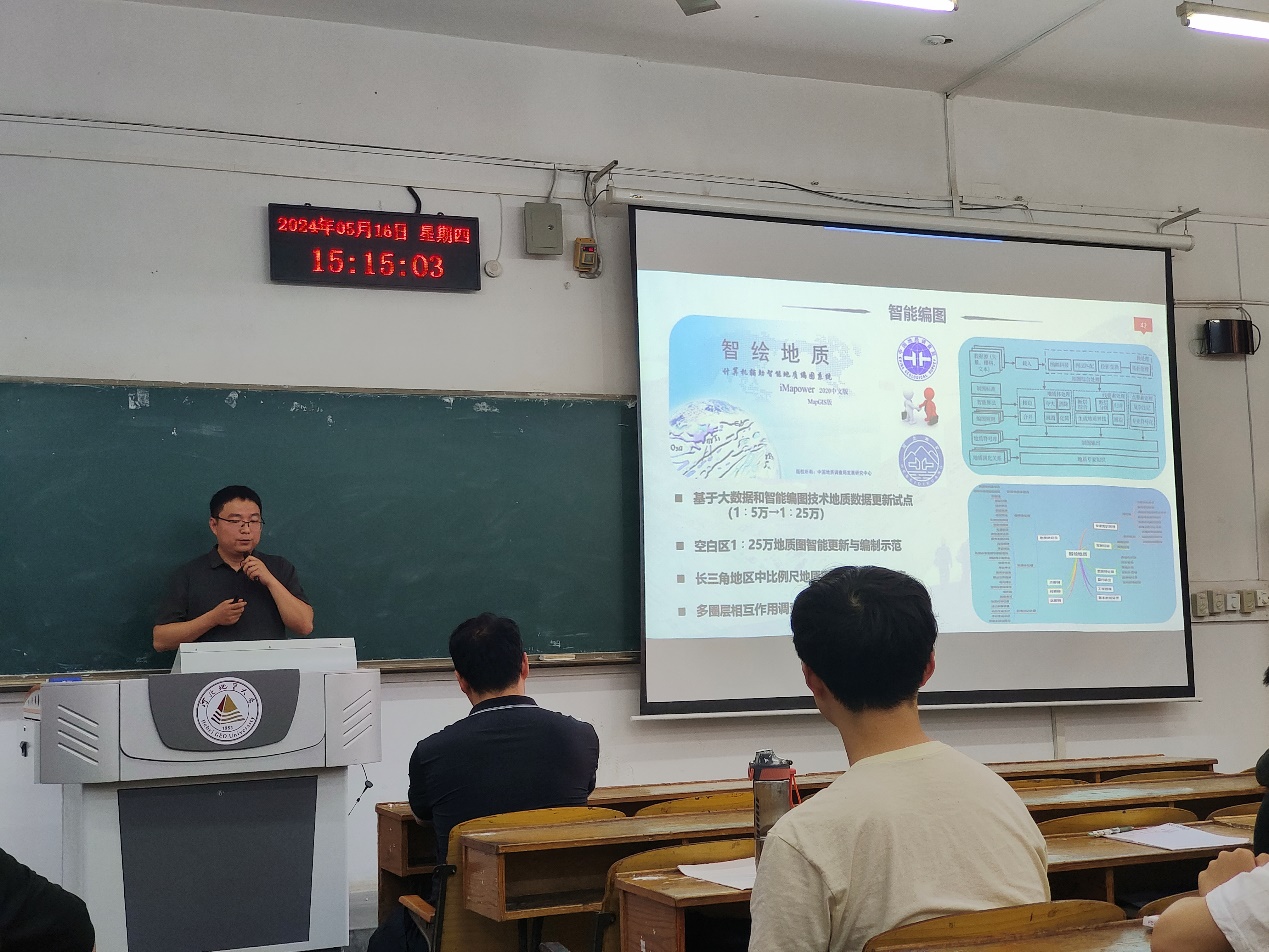 5月16日下午,地球科学学院邀请河北省区域地质调查院高级工程师毛志芳和段先乐为地球科学学院学生分别做了题为《河北省地学旅游资源禀赋及探索实践》和《区域地质资料二次开发与利用》的报告,地球科学学院副院长曹静杰主持了报告会。