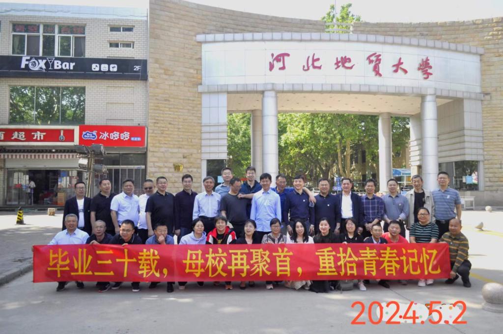 2024年5月1-3日,BB贝博原水工系90级校友在毕业三十周年之际,从全国各地齐聚石家庄,回到母校,举办了一场别开生面的同学聚会,并在主楼四楼会议室召开了师生座谈会。水环学院院长于开宁,原资环系党总支书记牛平山,原工程学院院长许广明,原水工系党总支副书记、辅导员齐宝辉,任课教师张燕君、冯朝军等出席了座谈会。