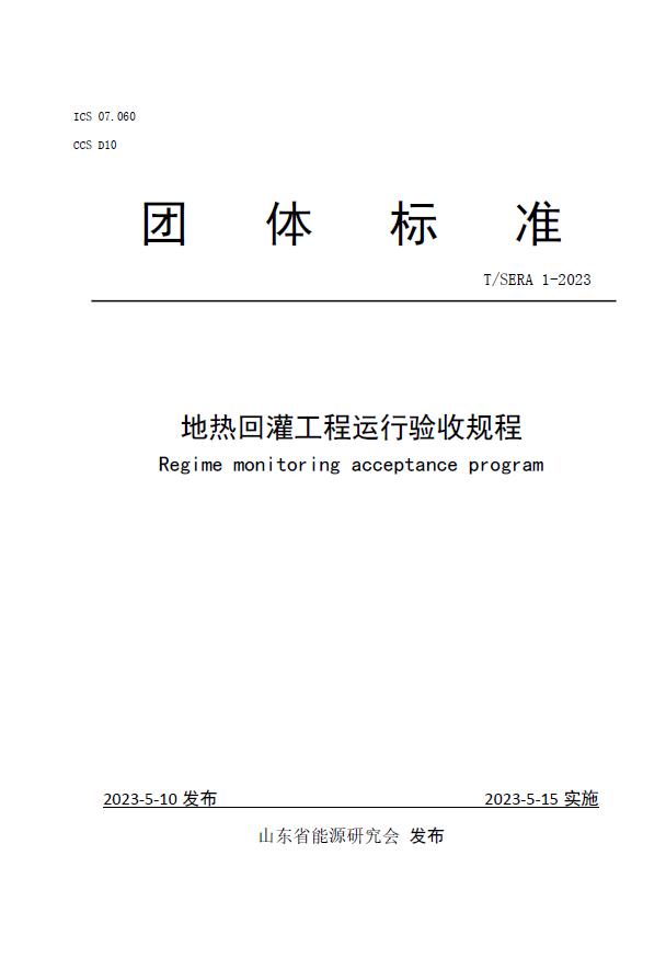 团标《地热回灌工程运行验收规程》(T/SERA 1-2023)