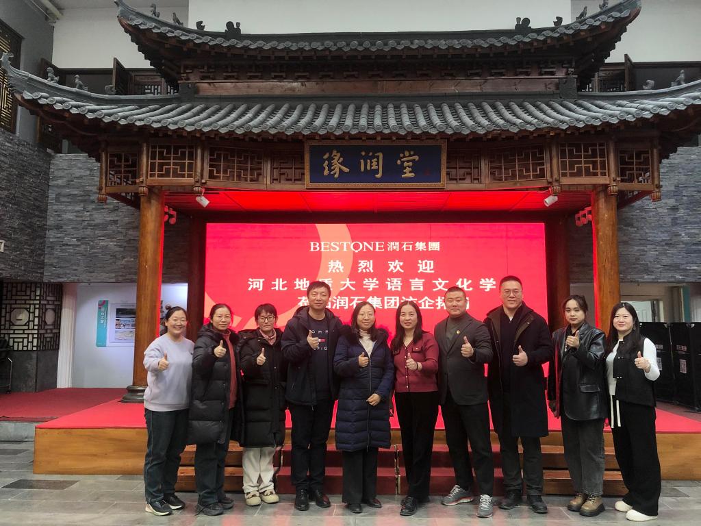 此后,林琳、杨旭辉、安尚勇带队,对河北润石集团进行了实地走访。润石集团是一家涵盖珠宝品牌连锁、国际贸易、乡村振兴、大健康、文化投资等多领域业务的多元化企业。双方就进一步深化校企合作,开展学生实习等展开了座谈。
