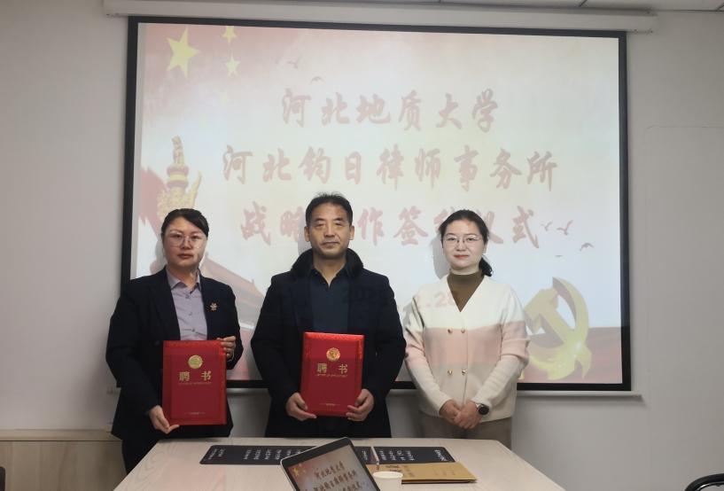 侯丽艳代表学校与河北钧日律师事务所签署了“实践教学基地协议书”,并代表学校颁授“法学研究教育共建单位”牌匾。马沁芳为冯路钧、张朝阳颁发客座教授聘书。双方与会人员就联合科研项目、学生实习实训、教师互访交流等相关合作事宜进行座谈,并现场议定设立钧日法学奖学金。