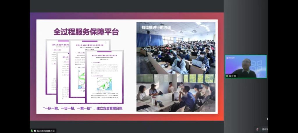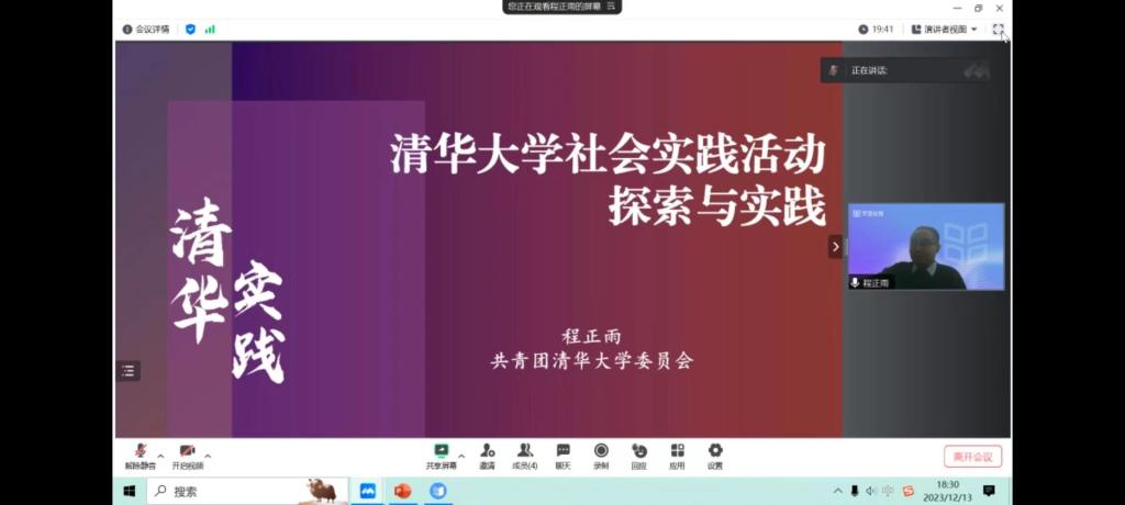 12月13日晚,清华大学校团委副书记、全国乡村建设高校联盟副秘书长程正雨为BB贝博实践师生讲述了清华大学的实践育人体系、乡村建设高校联盟的行动进展、社会实践活动的功用与社会价值等内容。