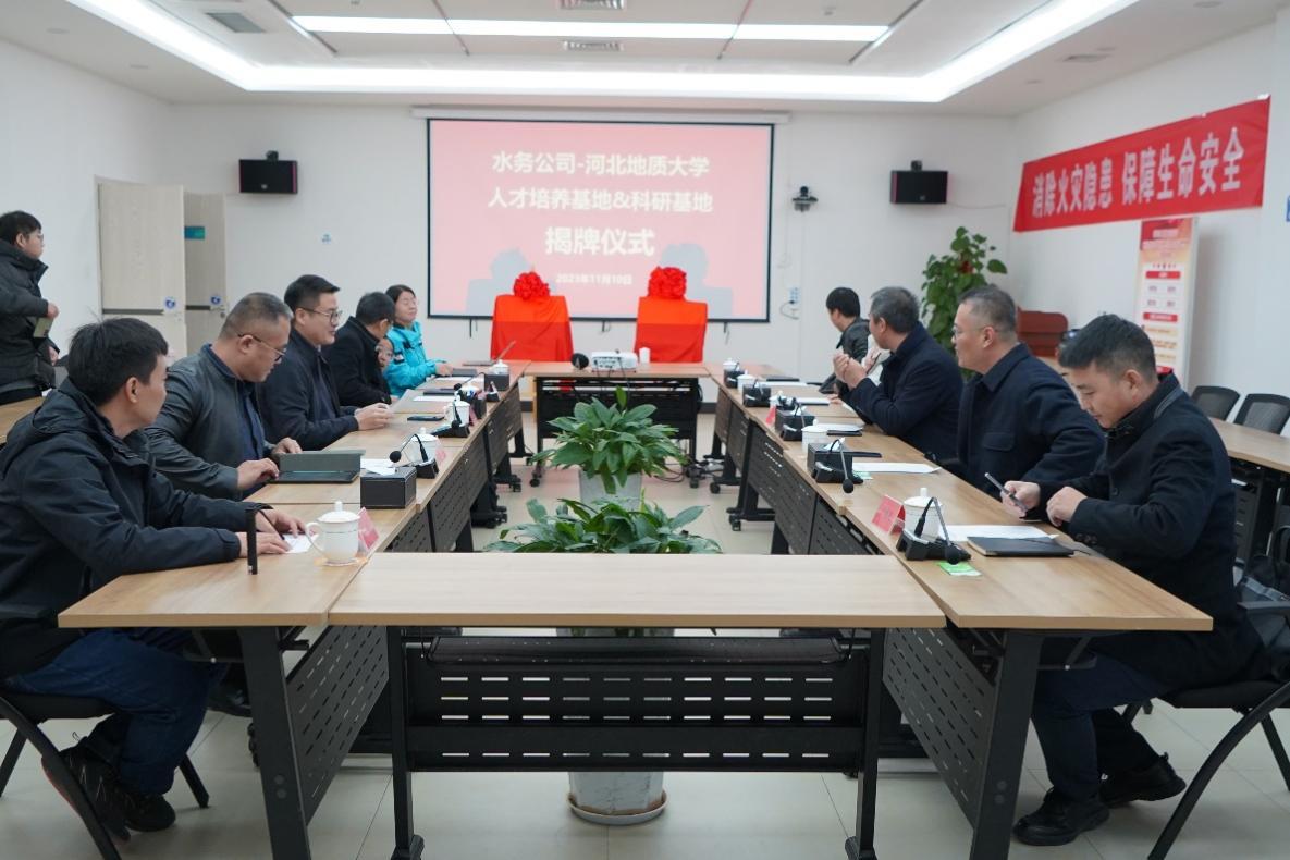揭牌仪式开始前,校企双方举行了交流座谈会,张永亮首先对BB贝博艾弗森官网一行的到来表示欢迎,介绍了雄安集团水务公司的几大业务板块,欢迎从人才培养、社会实践、技术顾问等方面展开合作。
