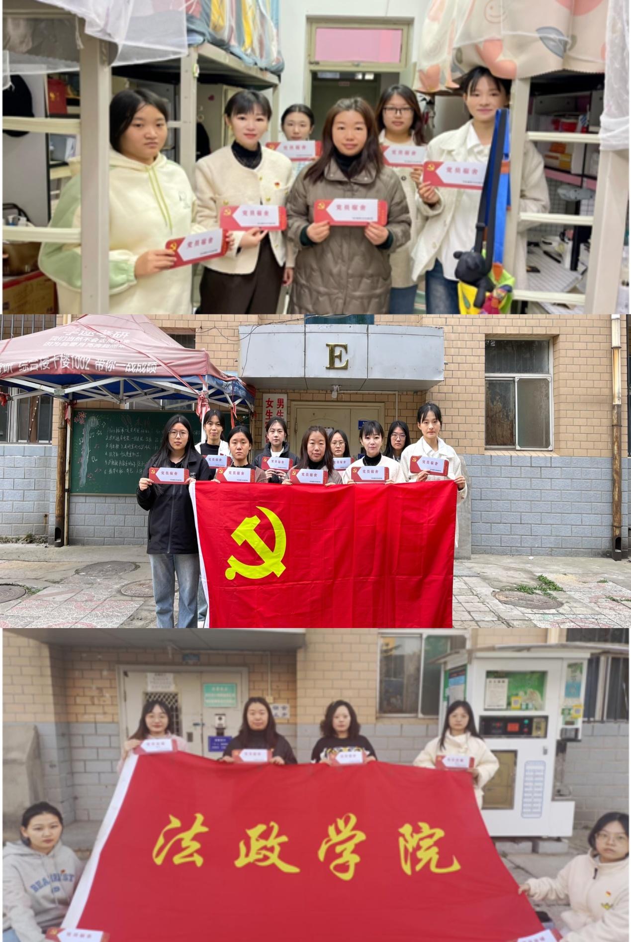 为了落实党建育人工作,增强学生党员的身份意识,充分发挥党员的先锋模范作用,进一步促进学生一站式社区学生党支部建设,营造文明、和谐、安全学生宿舍氛围。11月9日下午,法政学院党委副书记朱晓玲、辅导员程玥溪、杨柳前往学生宿舍举行“亮身份、明职责、树先锋”党员宿舍挂牌活动。