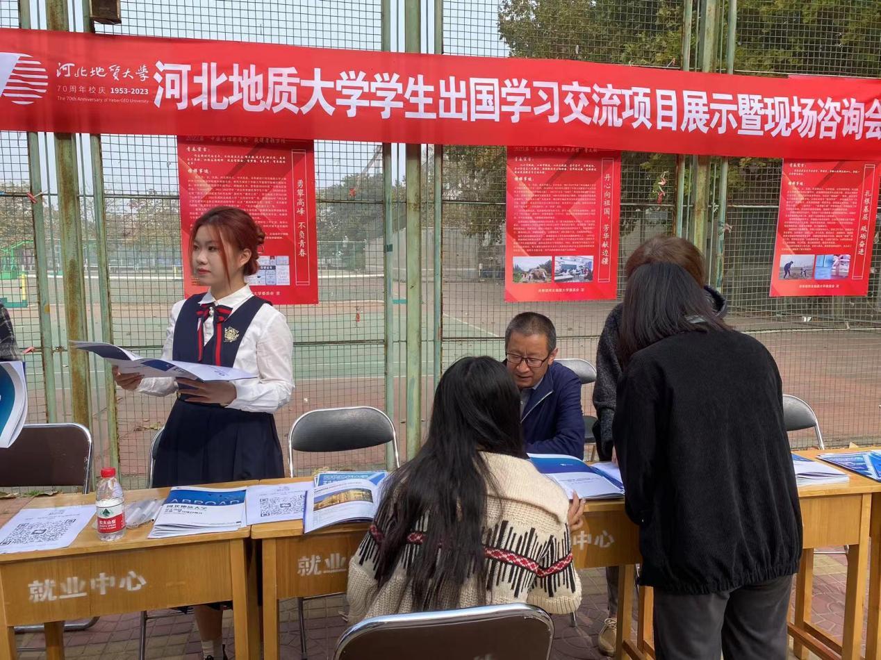 11月2日,学生出国学习交流项目展示暨现场咨询会在南院网球场南侧的甬道上举办。