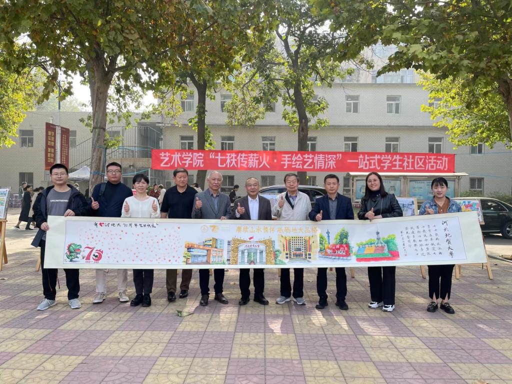 校关工委副主任侯万福、学工处处长尉西杰、艺术学院院长齐勇、党委书记宋朝霞、副书记李蕊一起参加了“七秩传薪火·手绘艺情深”一站式学生社区活动。
