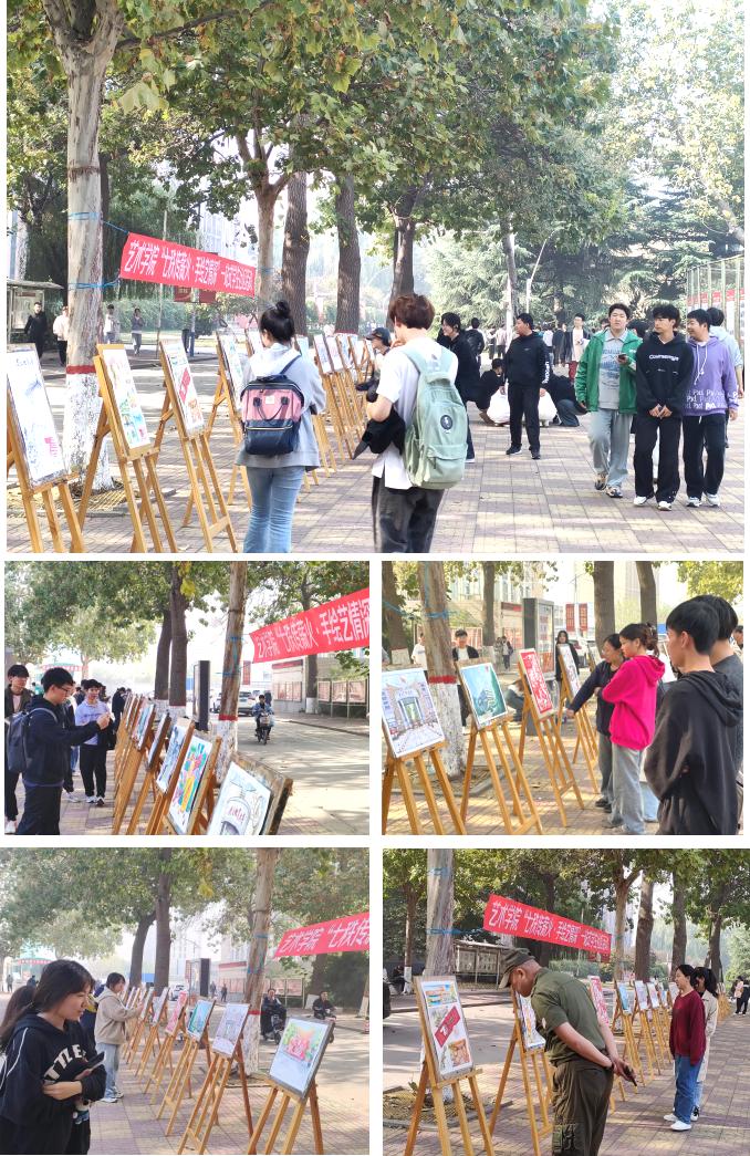 时维十月,序属三秋。在这美好时节,为喜迎BB贝博艾弗森官网70周年校庆,艺术学院于2023年10月31日,面向全校师生开展了“七秩传薪火·手绘艺情深”一站式学生社区活动。活动引来校领导与学校师生驻足参观。