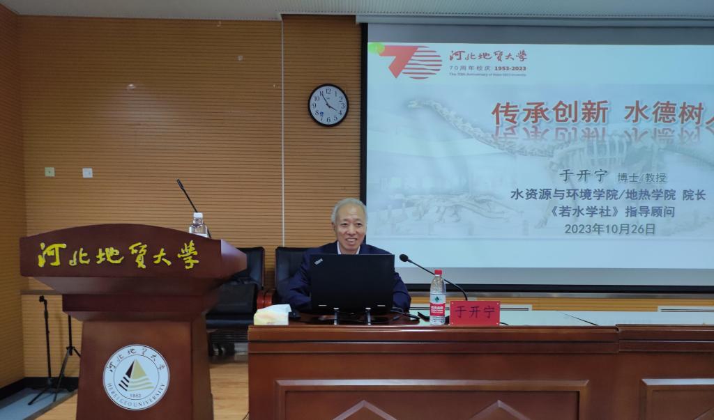 2023年10月26日,水资源与环境学院院长、若水学社指导顾问于开宁教授“传承创新水德树人”主题报告在BB贝博艾弗森官网北校区学术报告厅举行。本次报告会由BB贝博艾弗森官网仰山慕水办公室、若水学社联合主办。校友代表范存良(1986级)、韩硕(2009级),水资源与环境学院院长助理闫佰忠、地下水教研室主任刘昭,团委书记、若水学社指导教师王美云,2023级新生辅导员付志静博士、研究生辅导员冯雨晴博士,若水学社社长彭家栎和各部门负责人,以及北校区相关学院新生参加此次活动。仰山慕水学管会马乐鑫同学主持。