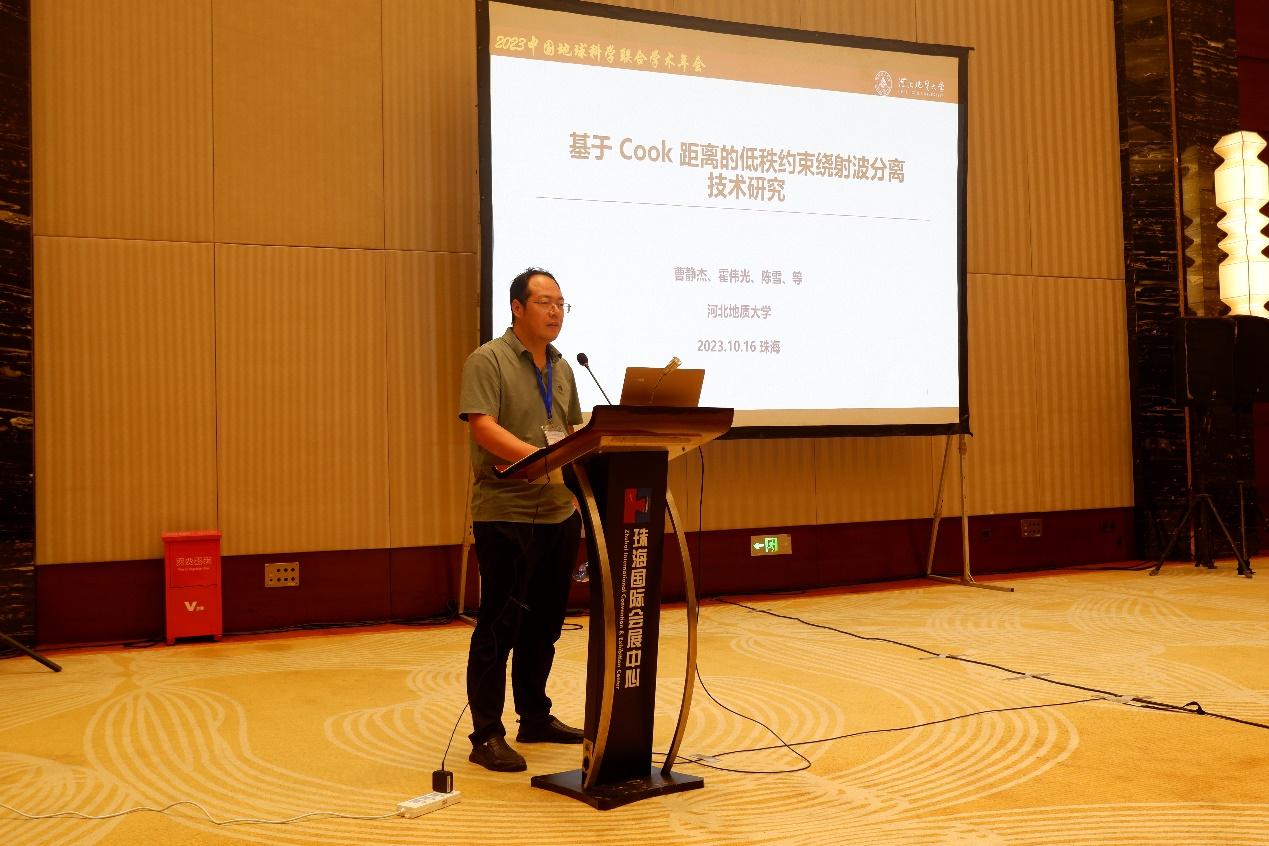 曹静杰教授作为专题召集人召集和主持了“第25分专题:浅地表地球物理进展”,并作了《基于Cook距离的低秩约束绕射波分离技术研究》的专题报告,李英杰教授在“(联合专题二)中亚造山带的形成演化、深部过程及其资源环境效应”,作了题为《洋内弧的大陆地壳生长与分异——来自中亚造山带前弧蛇绿岩中斜长花岗岩的启示》的报告;研究生霍伟光作了题为《基于自适应矩阵降秩的地震数据去噪方法研究》;研究生刘江作了题为《基于压缩感知的浅层面波地震数据采集与处理研究》的报告,研究生朱煜嘉作了题为《基于改进U-Net的混合震源数据分离》的报告,研究生王雨琦作了题为《基于压缩感知理论的实用化浅层地震采集设计》的报告,宣传了BB贝博地震信号处理团队的最新成果。