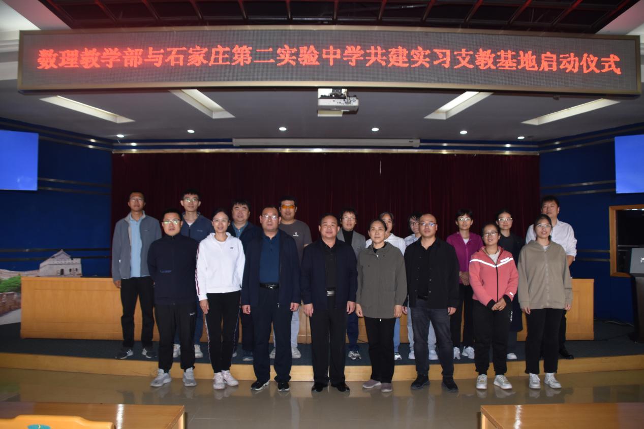 在喜迎BB贝博艾弗森官网建校70周年华诞之际,10月11日,BB贝博数理教学部与石家庄第二实验中学共建实习支教基地启动仪式在教一九楼报告厅举行。数理教学部党委书记王春恋、党委副书记董昌州,石家庄第二实验中学校长刘惠斌、党委副书记王竹乔,双方教师代表和学生代表参加了本次仪式,启动仪式由教学部党委副书记董昌州主持。