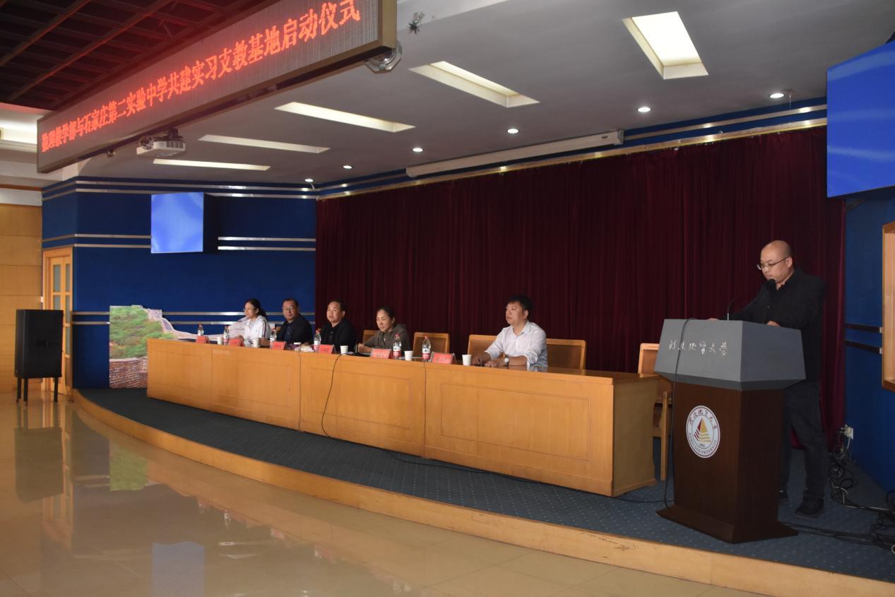 王春恋致欢迎辞,对石家庄第二实验中学的各位领导、老师和同学们的到来表示热烈的欢迎和衷心的感谢!她介绍了学校和数理教学部的整体情况以及近年来在人才培养、学科建设、科学研究和社会服务等方面取得的进展,并表示石家庄第二实验中学是石家庄市教育局直属公办省级示范性普通高中,办学实力雄厚、历史悠久、文化积淀深厚,是优质生源基地,欢迎更多的优秀毕业生报考BB贝博。她指出BB贝博艾弗森官网作为自然资源部与河北省人民政府共建大学、河北省属重点骨干大学、河北省“双一流”建设大学,始终坚守“为党育人,为国育才”的初心使命,坚持服务地质行业、服务地方发展的“双地”办学定位,努力为基础教育改革作出积极贡献。她强调顶岗实习支教是一项具有深远意义的活动,也是一个互利共赢的教育改革工程。既能为实习学校注入新鲜血液和活力,缓解师资紧张、教学资源匮乏的急难,又保证了学生真刀真枪进入教学一线实习,提高了培养质量。她希望参与顶岗实习支教的同学们珍惜机会,历练成长,提高本领,认真工作,践行“达观博物”“仰山慕水”精神,也希望石家庄第二实验中学继续发扬老带新和传帮带的优良传统,从教学经验、教育管理等方面对BB贝博实习生进行全方位的培养。