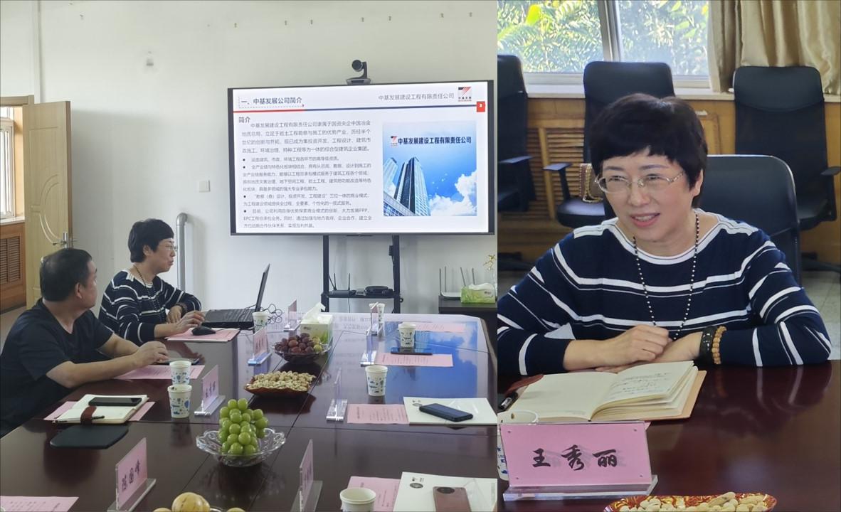 王秀丽总工程师首先致欢迎词。对于开宁院长一行的到来表示热烈欢迎,随后介绍公司情况。中基发展建设工程有限责任公司隶属于国资央企中国冶金地质总局,历经半个世纪的创新与开拓,现已成为集投资开发、工程设计、建筑市政施工、环境治理、特种工程等为一体的综合型建筑企业集团。在双方前期合作基础上,期待着开展校企深度合作,签订战略合作协议。