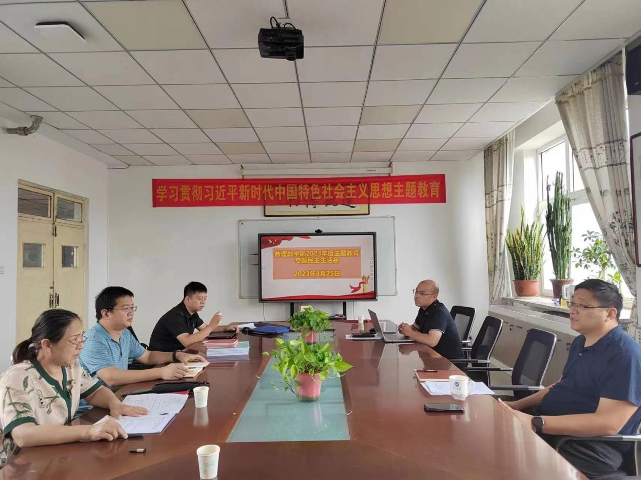 根据河北省纪委机关、河北省委组织部和学校党委有关通知精神,按照《中共BB贝博艾弗森官网委员会学习贯彻习近平新时代中国特色社会主义思想主题教育专题民主生活会工作方案》的要求,8月25日下午,数理教学部领导班子在主楼731会议室召开学习贯彻习近平新时代中国特色社会主义思想主题教育专题民主生活会。教学部党委书记王春恋主持会议,教学部主任曹南斌、党委副书记董昌州参加会议。