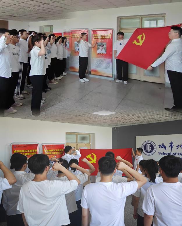为落实主题教育“学思想、强党性、重实践、建新功”的总要求,增强学生党员的党性修养,进一步教育引导新发展党员铭记入党初心、强化党员意识、坚定理想信念,充分发挥党员的先锋模范作用,6月13日上午十点,城市地质与工程学院学生党支部举行了学习贯彻习近平新时代中国特色社会主义思想主题教育学习会暨新党员入党宣誓活动。