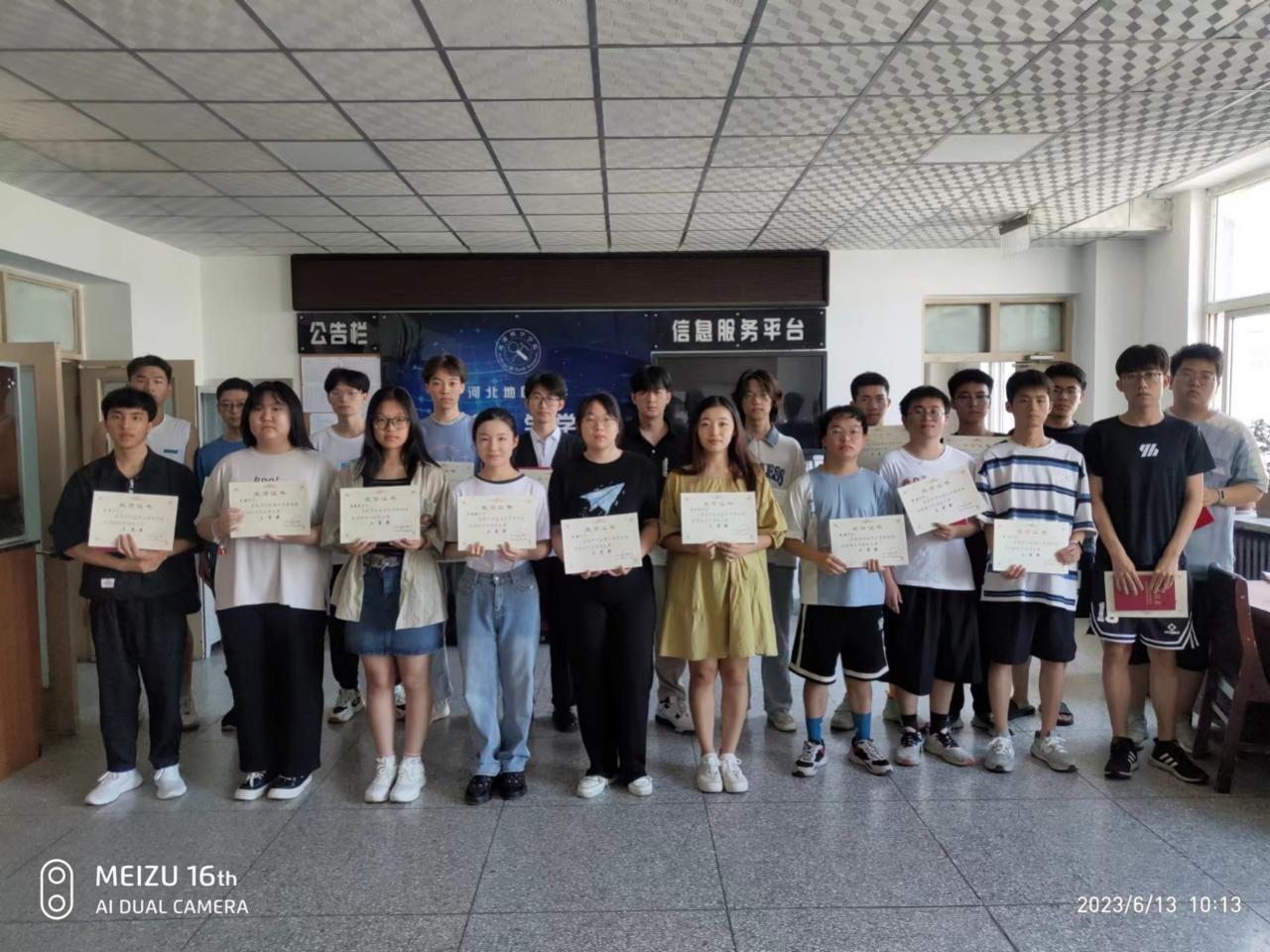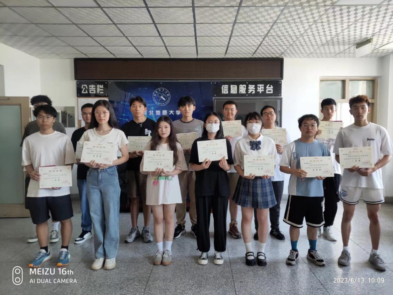 6月10日上午,在教1-201、教1-202和教1-206举行地学基础笔试比赛,竞赛过程中同学们严肃认真,积极进取(照片5)。笔试成绩优秀者于6月11日上午在主楼627参加了岩矿镜下鉴定比赛(照片6)。按照公平、公正、公开的原则,比赛最终评选出特等奖5名,一等奖10名(照片7),二等奖22名(照片8),三等奖25名(照片9)。