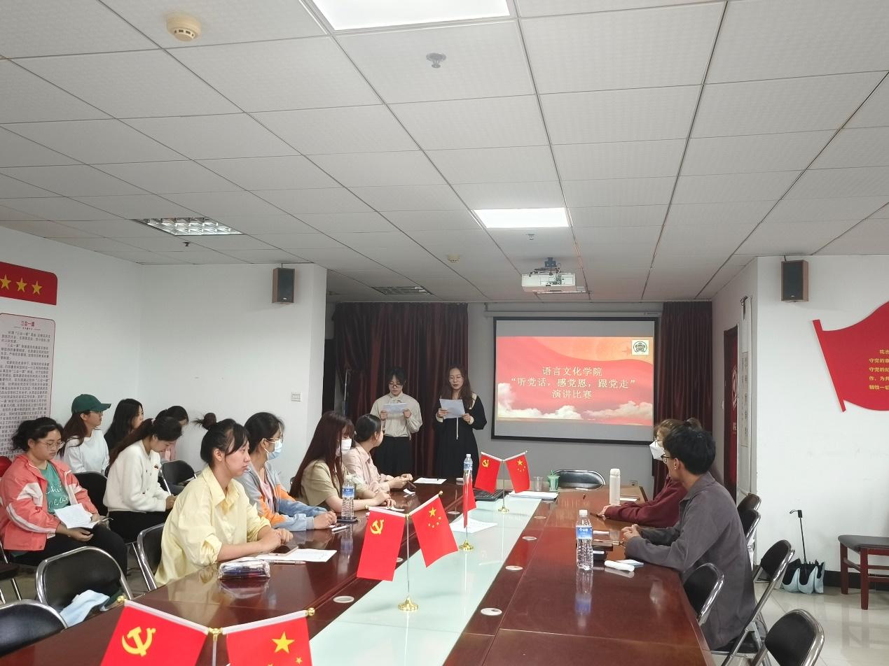 2023年5月27日上午10点,为了推进学习贯彻习近平新时代中国特色社会主义思想主题教育深入开展,语言文化学院举行了“听党话,感党恩,跟党走”主题演讲比赛。经过激烈角逐,共评出特等奖1名,一等奖2名,二等奖4名,三等奖6名。