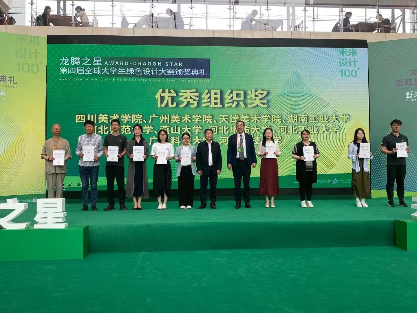 5月21日上午第四届“龙腾之星”全球大学生绿色设计大赛颁奖典礼在河北科技大学隆重举行,BB贝博艺术学院院长齐勇,视觉传达设计教研室主任郑新涛及获奖学生张博超受邀参加。此次大赛BB贝博艺术学院多个学生作品获奖,其中赵猛老师指导的视觉传达专业学生张博超在第四届“龙腾之星”全球大学生绿色设计大赛中获得“金奖”,奖金5000元。BB贝博艾弗森官网获“优秀组织奖”。