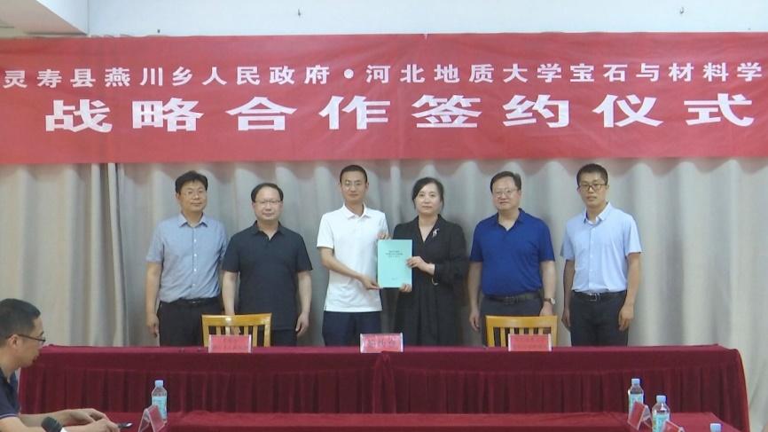 宝石与材料学院院长李艳和南燕川乡乡长左一雄就战略合作进行了签约。根据协议,双方未来将在学科教育、科学研究、实习基地建设、学生就业、党支部建设等方面加强对话与合作,共同构建符合时代发展需要的新型战略合作关系,更好的服务行业和灵寿县高质量发展。